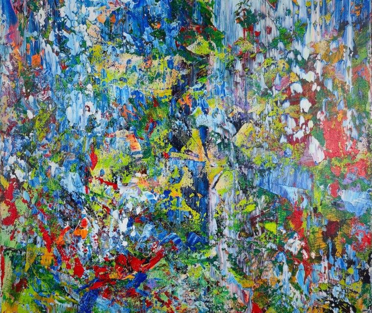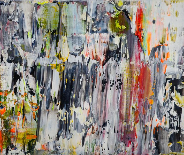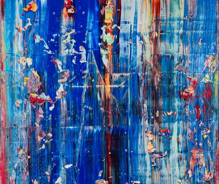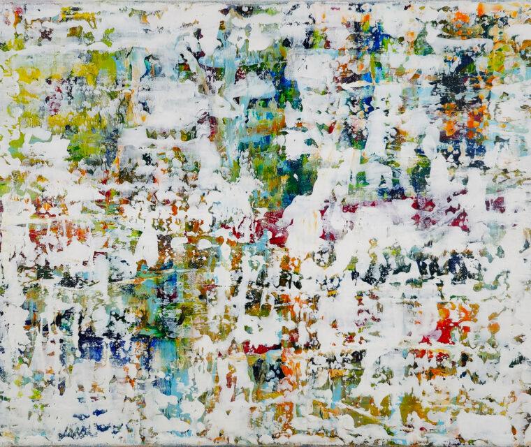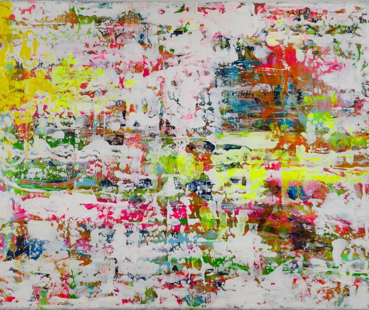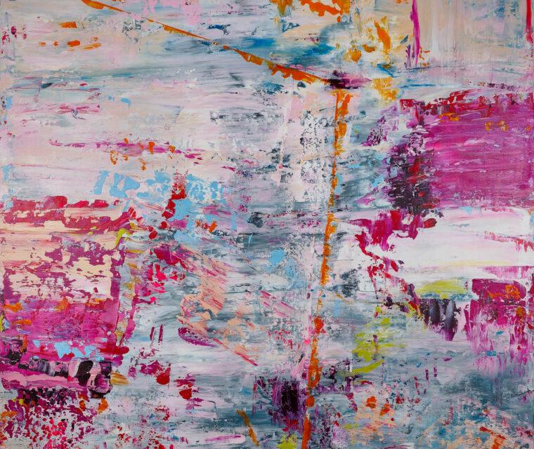 Meine Farbgeschichten sind geprägt durch wiederholendes Auftragen, Abkratzen und Verziehen der Farbe auf der Leinwand. Inspiriert durch K. O. Götz und Gerhard Richter.